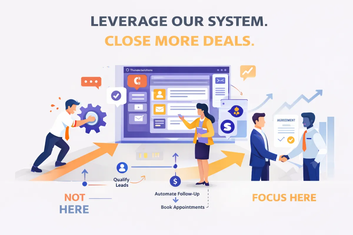 New investors: You're overwhelmed doing everything yourself—finding leads, learning systems, following up, closing deals. You're stuck in the weeds, not building a business.